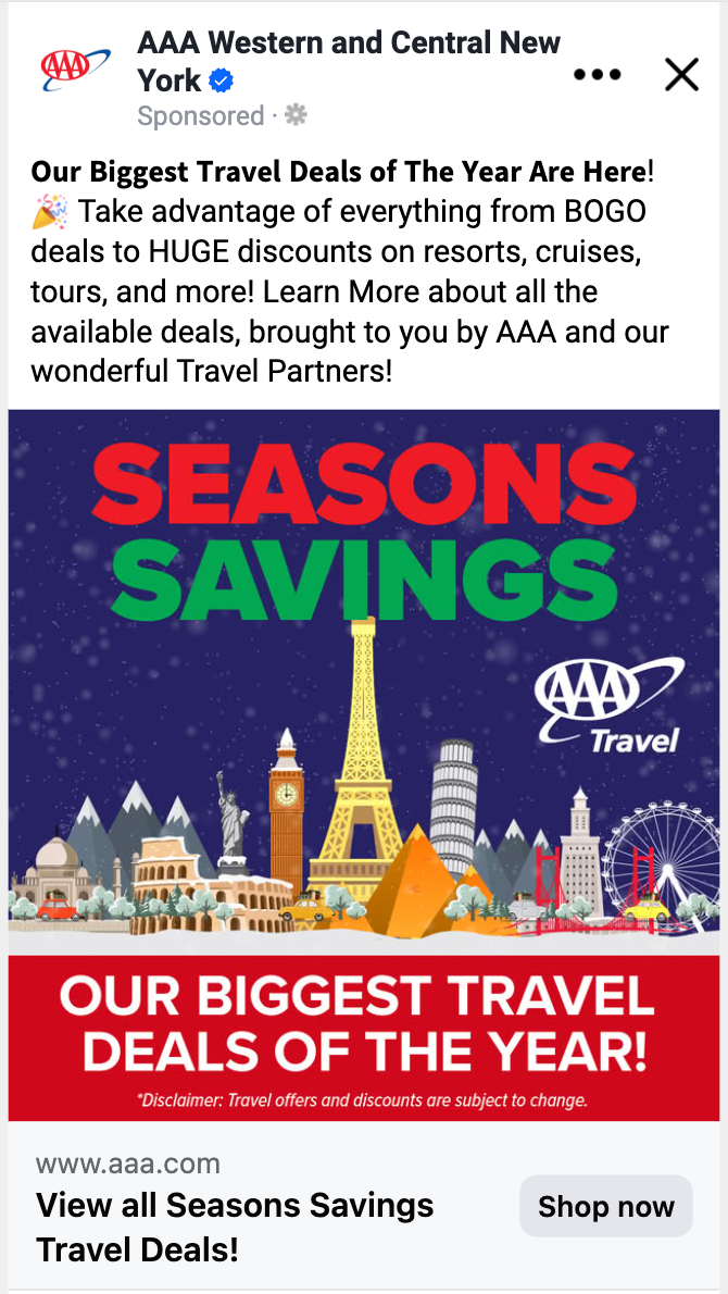 The portfolio examples below highlight a selection of ads I designed and managed, showing how I use data, design, and strategy together to drive measurable results across AAA’s business lines.