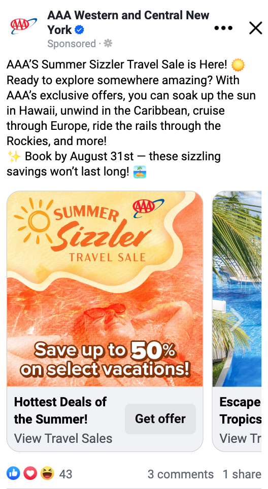 At AAA, I manage digital advertising across Meta and Google for Membership, Insurance, Travel, Driver Training, and Medicare. My work combines strategic planning, creative direction, and ongoing performance analysis to build campaigns that are both visually engaging and conversion focused.